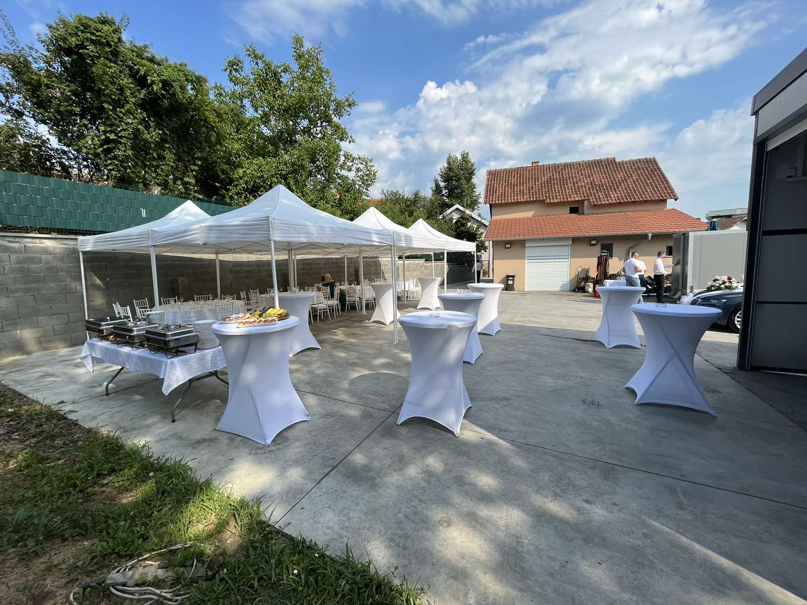 Ukoliko planirate slavlje kod kuće, na otvorenom ili vam je potrebna oprema iz naše ponude za sale, salaše, open koncepte... Tu smo da Vam olakšamo i uradimo celokupnu postavku. Vršimo iznajmljivanje opreme za organizaciju slavlja na široj teritoriji Beograda, a isporuku naplaćujemo u zavisnosti od udaljenosti. Imamo u ponudi Tifani stolice, stolove, barske stolove, pagode, suncobrane, čaše, escajg i servis za ručavanje. Paket ponude podrazumeva postavku stola za 10 osoba sa celokupnim sadržajem (sto, stolnjak, tifani stolice sa jastučićem, čaše, servis za ručavanje, escajg, salvete, piksla). Prepustite postavku opreme našem timu, po veoma povoljnim cenama i uživajte u Vašem slavlju.